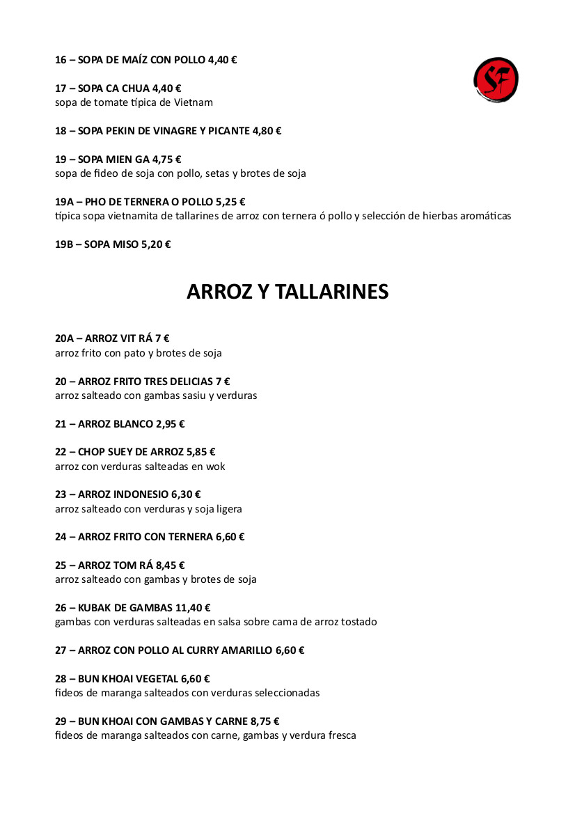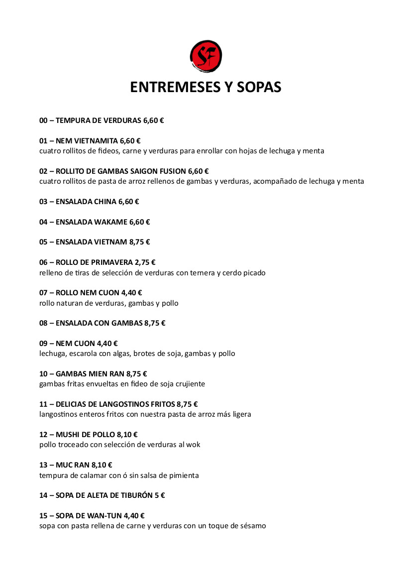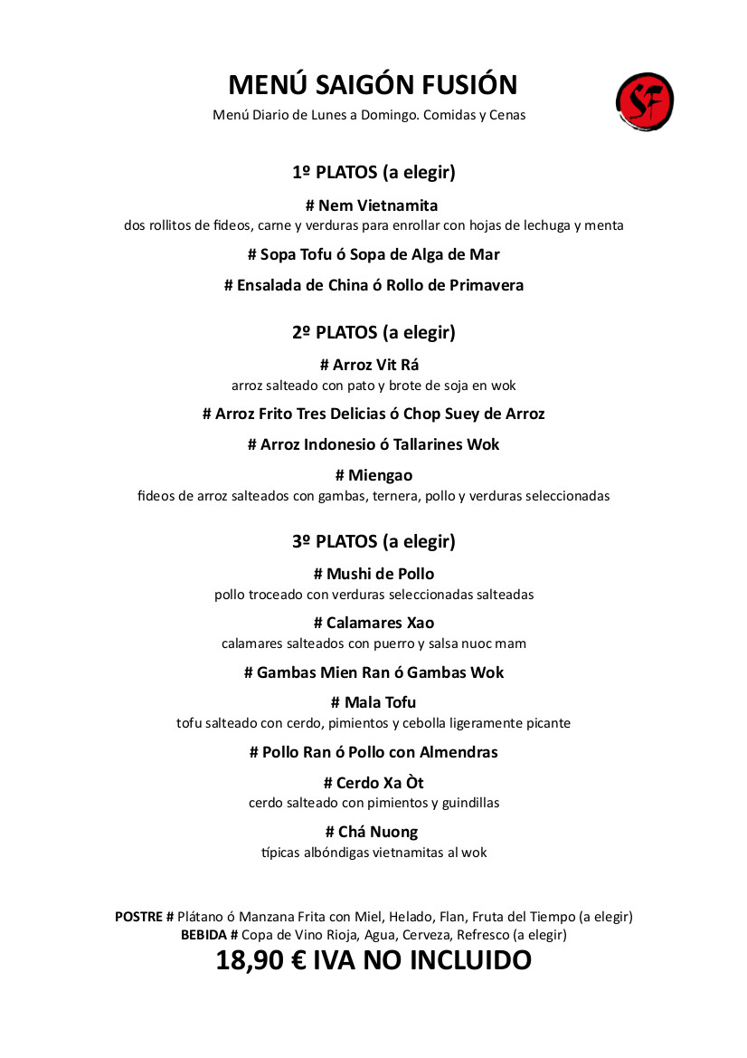–> Vea ó Descárgue el PDF La Nueva Carta 2025 de Saigón Fusión