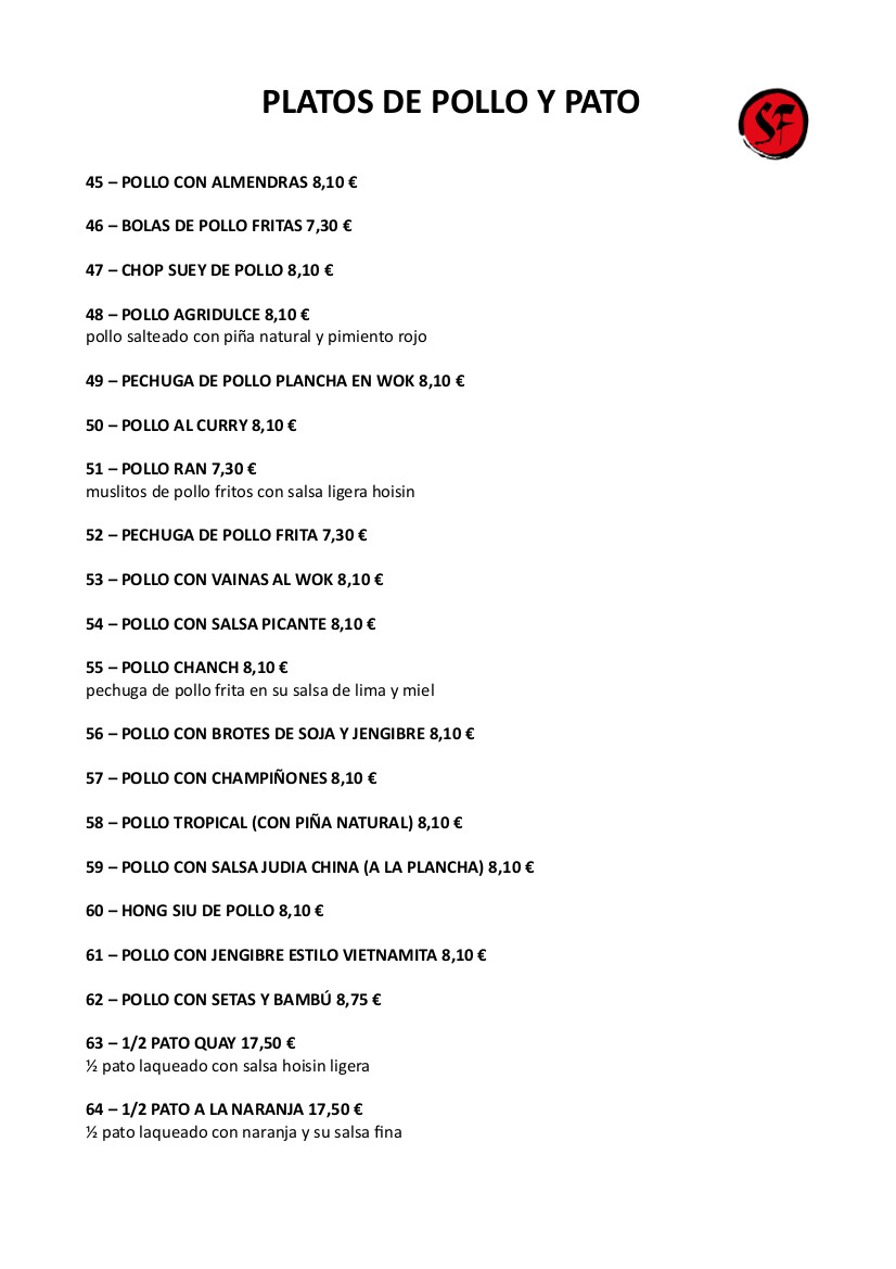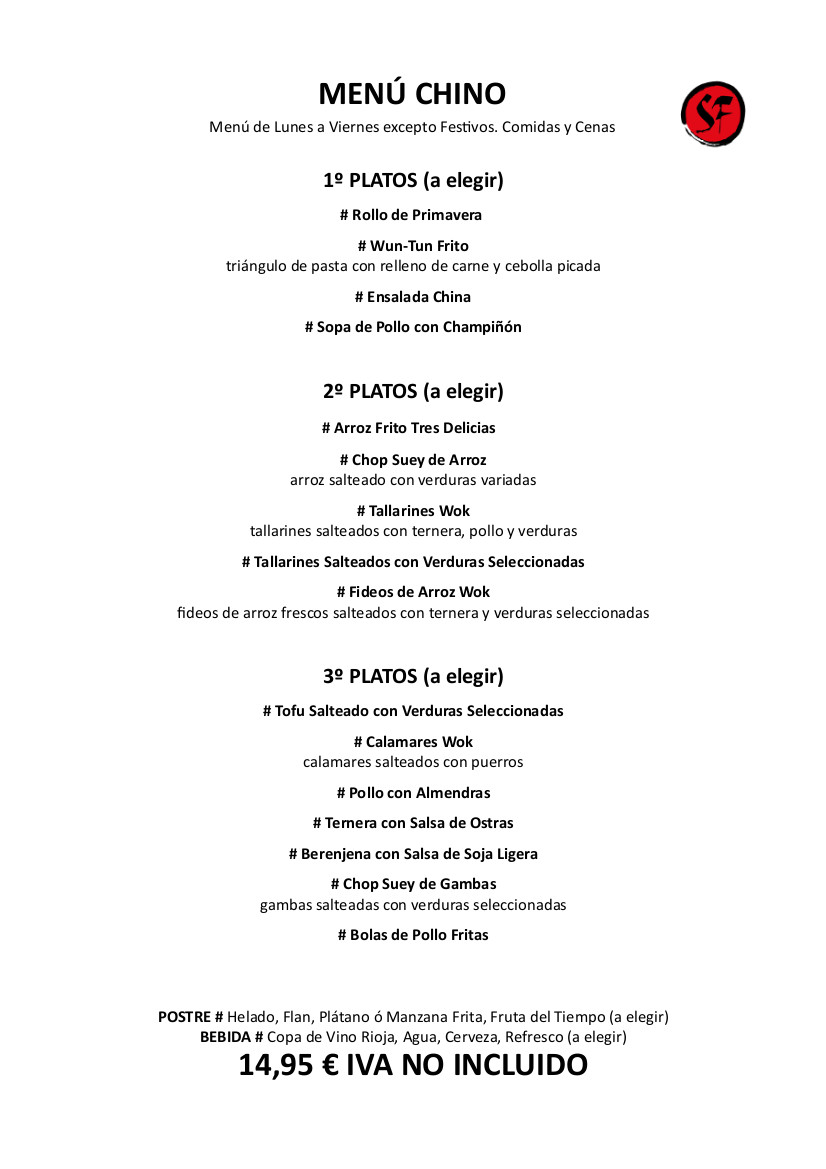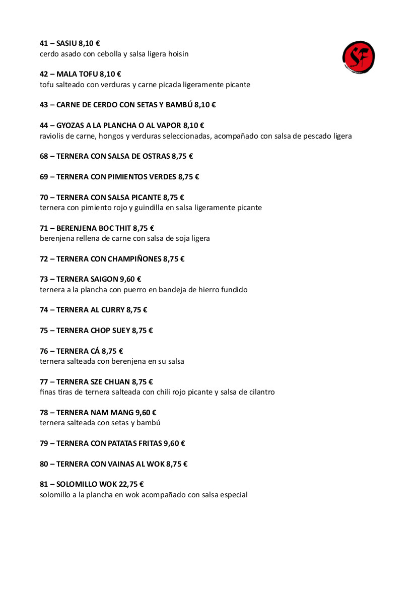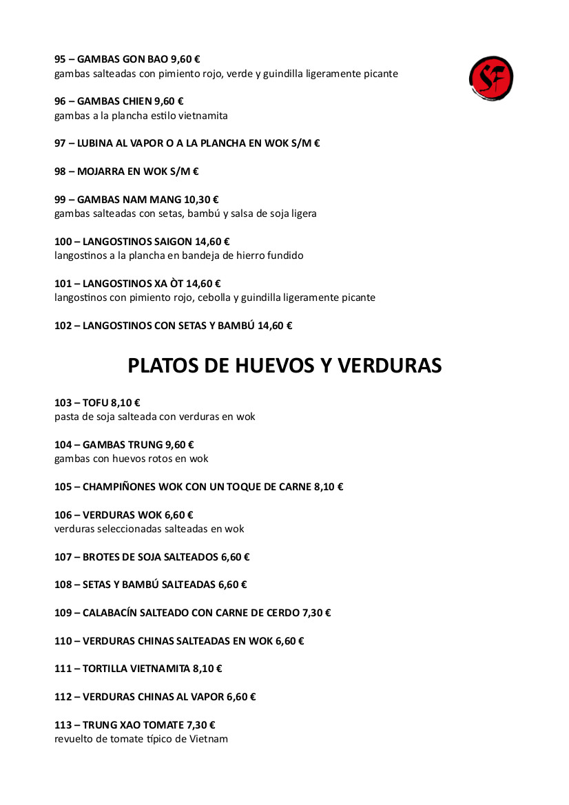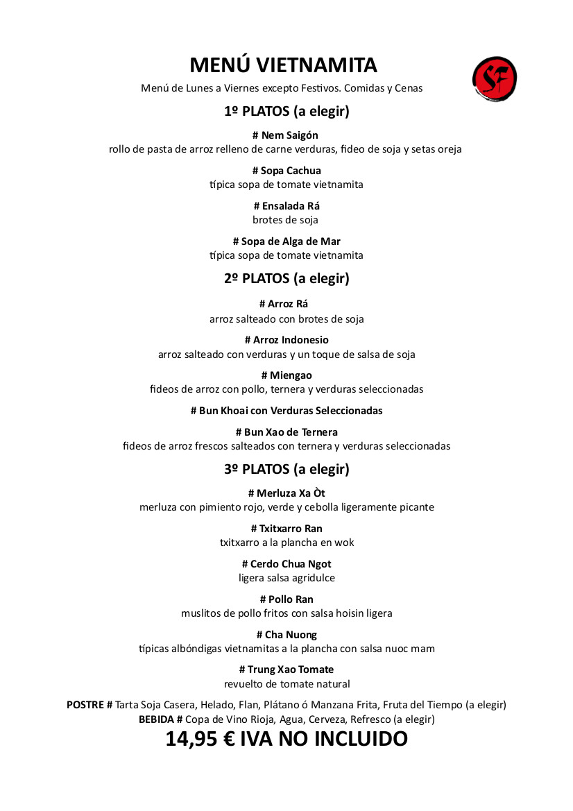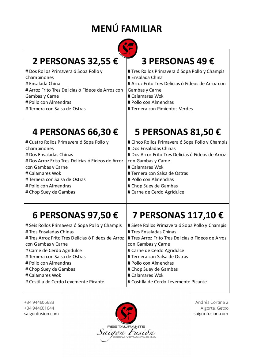 Disfruten nuestra carta especializada en cocina china vietnamita Carta Saigon Fusión, Restaurante Chino Vietnamita, Algorta Getxo, Bizkaia.